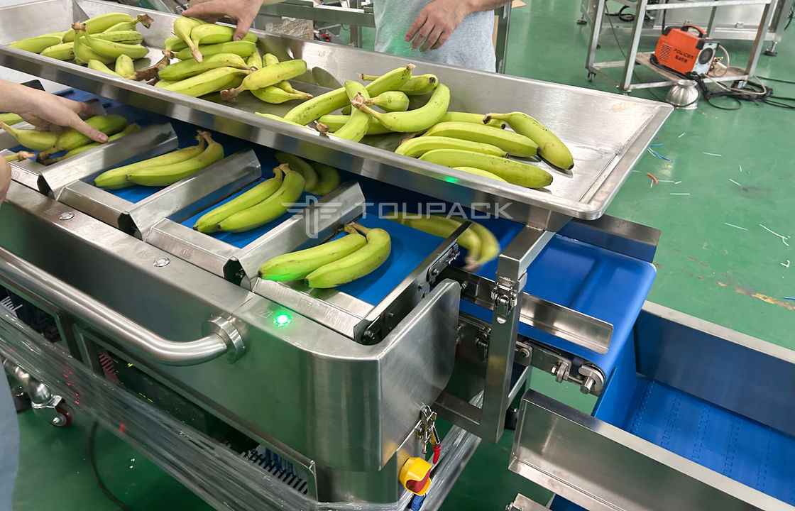 解決法: 12つのヘッドベルトの組み合わせたスケール + 傾斜コンベヤー + 半自動ネットバッグパッキングマシン