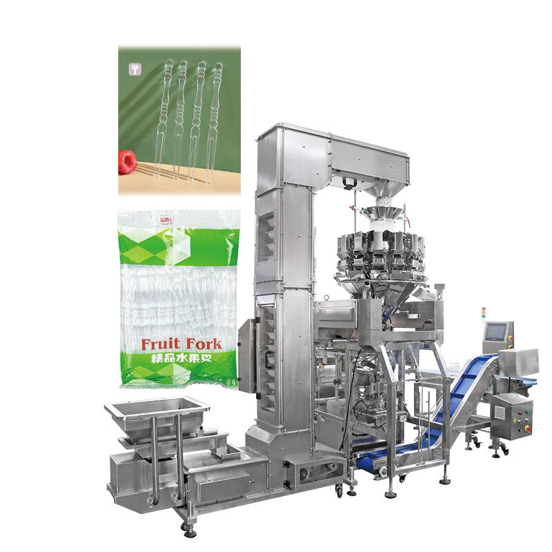 プロとして多頭秤メーカー信頼性と完全に自動的なパッケージングソリューションを使い捨ての家用品含め粘着フィルム,シャワーキャップ,乾燥剤シート,透明なプラスチック製のフルーツフォーク軽量な日常生活必需品